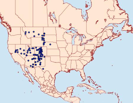 Distribution: ND, MT and NV south to AZ and eastern TX.